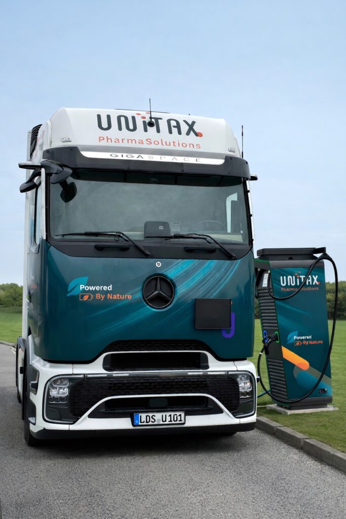 die Unitax Pharmalogistik GmbH hat am Hauptsitz Berlin-Schönefeld einen E-Lkw in Betrieb genommen; eine eigene Ladeinfrastruktur – gefördert vom Bundesministerium für Digitales und Verkehr – steht seitdem ebenfalls bereit.
