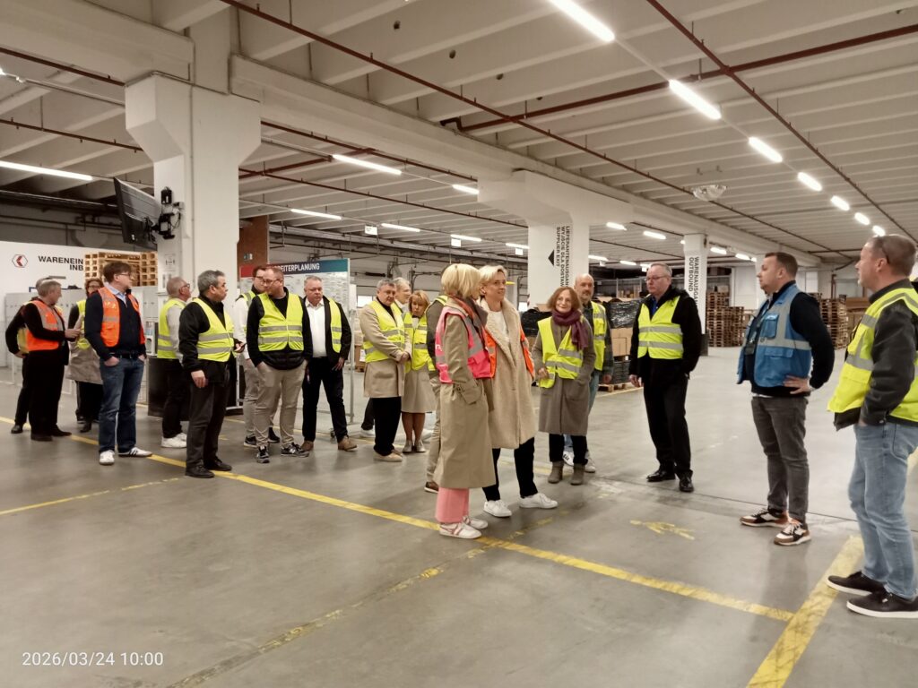 Nach den sehr aufschlussreichen Vorträgen folgte ein weiterer Programmpunkt: Ein Rundgang über das Gelände gab den Teilnehmern die Möglichkeit, sich vor Ort ein Bild von den modernen Logistikabläufen bei Fiege zu machen.