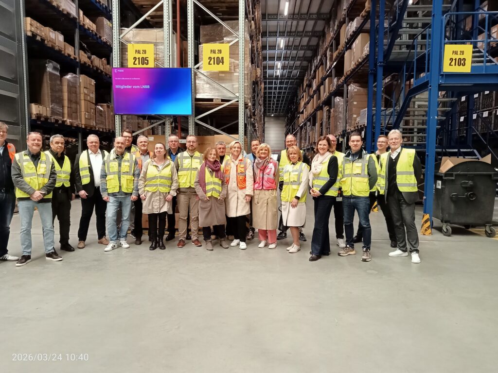 Großbeeren, 24. März 2026 – Rund 30 Gäste folgten der Einladung des langjährigen LNBB-Mitglieds FIEGE Logistik Stiftung & Co. KG zum diesjährigen Logistikfrühstück. Im Mittelpunkt stand ein Thema, das aktueller nicht sein könnte: „Zwischen Hilfeleistung und Sicherheit – Wie zivile Logistik die Bundeswehr unterstützt“.